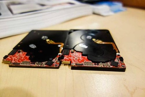 这个新硬盘驱动是如此的薄,西部数据在螺丝孔周围不得不用额外的金属来加固,以保证内部驱动的安全,硬盘内部放置的是一个500GB存储空间。由于价格不同,所以内部的驱动也会有所不同,有一些产品要比其他产品的闪存空间大。